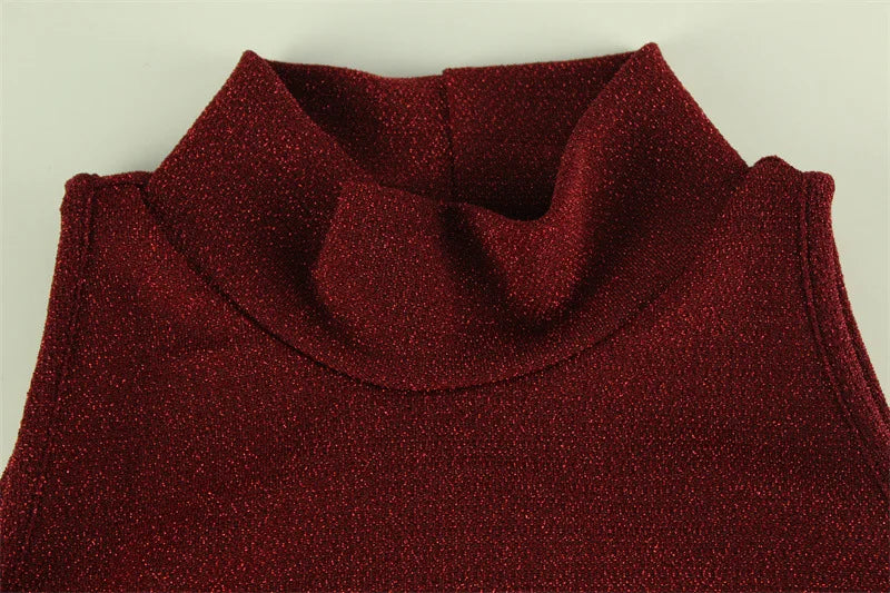 Sexy Sequined Turtleneck Maxi Dress β Slim Fit, Solid Color