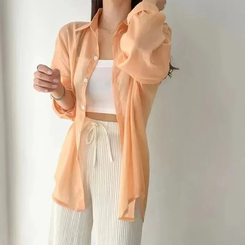 8 Colors Shirts Women Sheer Thin Chic Summer Simple Solid Sun-proof Temper Fashion Baggy All-match Basic Korean Style Clothes