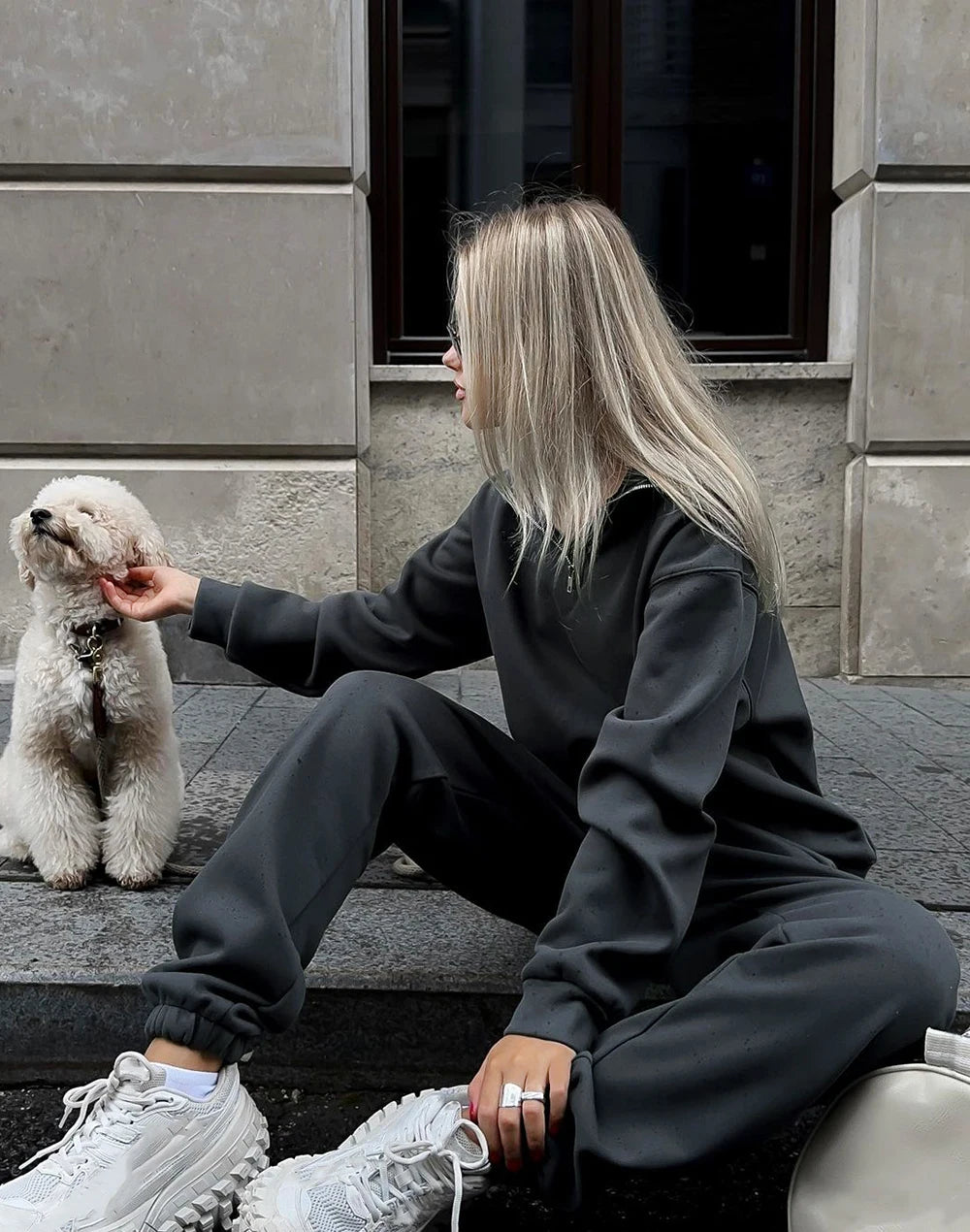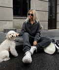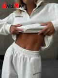 Autumn Women's Tracksuit with Zipper Cotton Oversize White Casual Two Piece Set Women Classic Sports Trouser Suits for Women