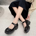 Black Ankle Buckle Platform Pumps Women Japanese Style Patent Leather Mary Jane Shoes Woman Punk Thick Heels Lolita Shoes Mujer