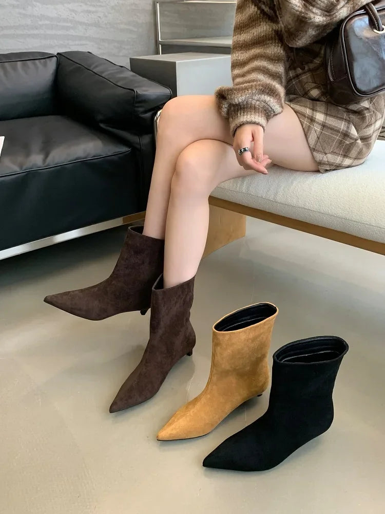 Eilyken Vintage Pointed Toe Women Ankle Boots Designer Thin Low Heel Shoes Modern Short Botas Autumn Winter Zapatos De Mujer