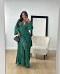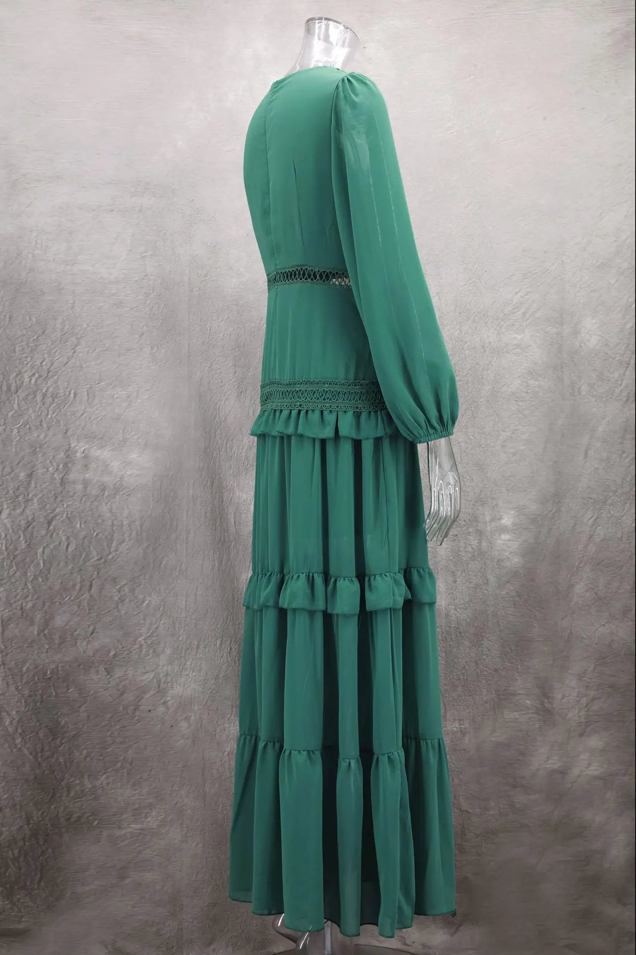 Elegant Womens Maxi Dress Ruffles Long Sleeve Hollow Out Evening Dresses Party Chic Robe Green Blue Purple New In Holiday Summer