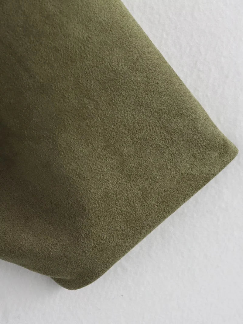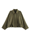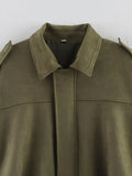ETJ 2025 Spring new women's suede texture effect Loose version of fashion lapel shoulder bomber jacket