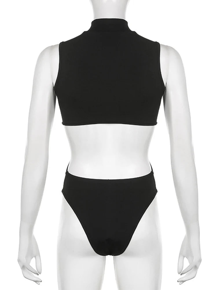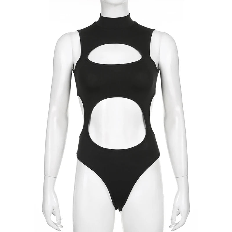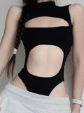 Gothic Techwear Sexy Hollow Out Sleeveless Tank Tops Bodysuit For Women Streetwear Style Backless Playsuit Vest For Women