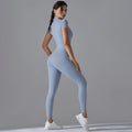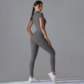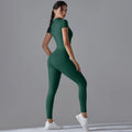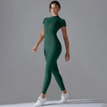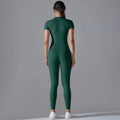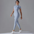 Naked zipper short sleeved yoga suit jumpsuit, quick drying breathable outdoor sports tight fitting jumpsuit, fitness suit