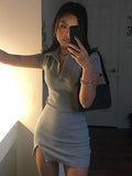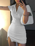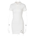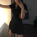 Short Sleeve Slit Sexy Mini Dress Summer Women Fashion Streetwear Outfits Cute Solid Party Clothing