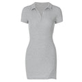 Title: Casual Buttoned Mini Dress β Turn-Down Collar, Slim Fit