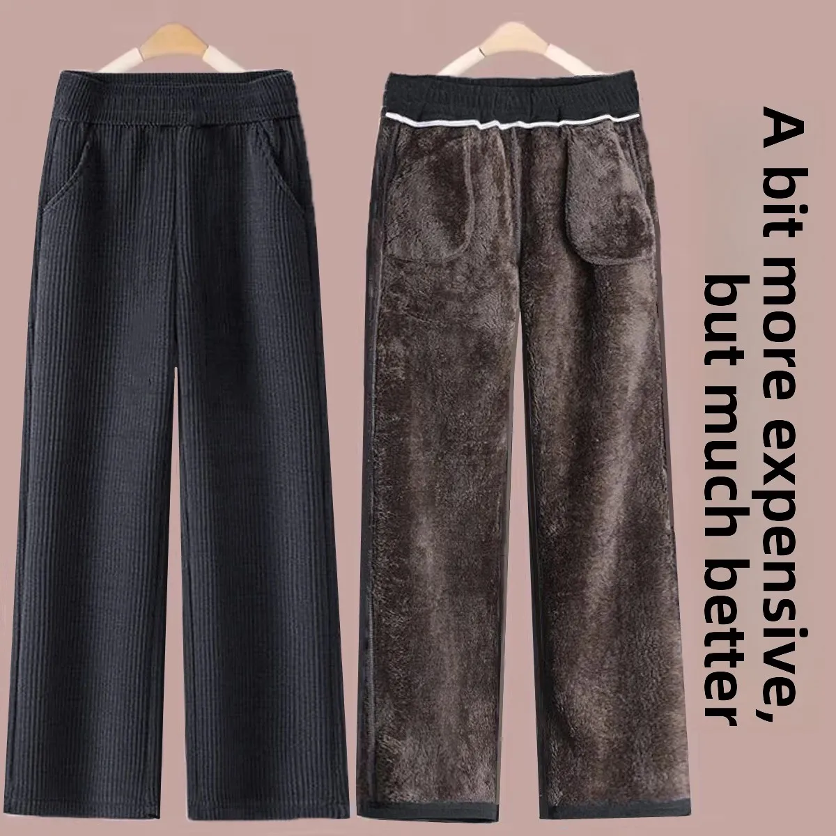 Thiened Fce Corduroy High Waist Wide Leg Pants Women's Autumn Winter New Sle Drapey Mom Straight Leg Trousers Trendy