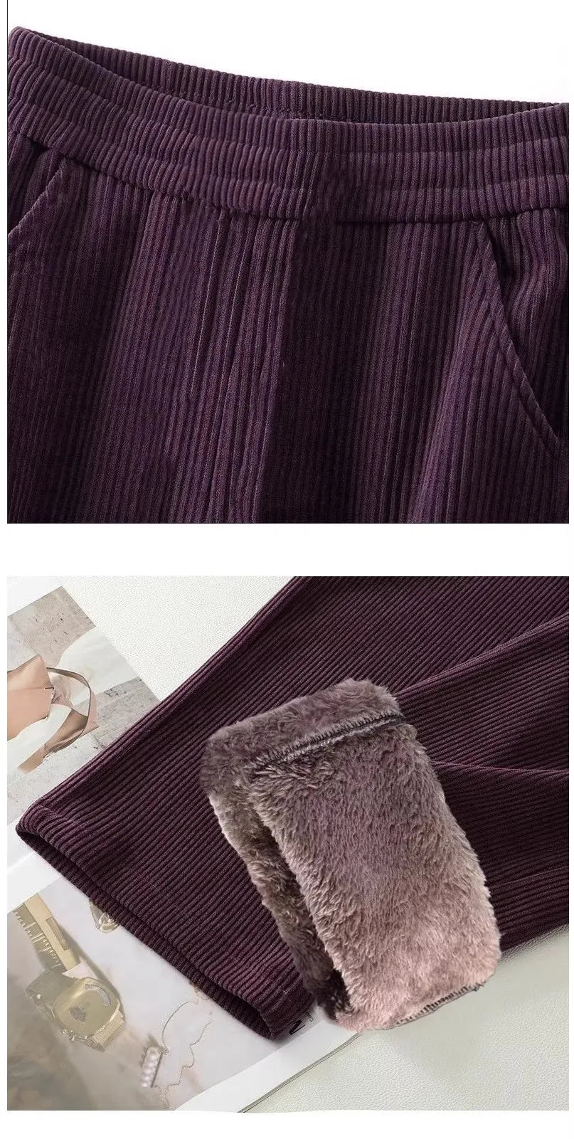 A cozy and stylish pair of casual pants designed for autumn and winter wear. Made from soft polyester fiber with a corduroy fabric finish, these pants provide warmth, durability, and a timeless solid-color look. Perfect for casual outings or relaxed everyday wear.