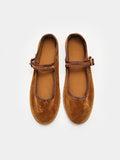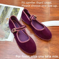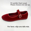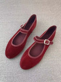 Velvet Mary Jane Shoes for Women Hand Stitch Casual Streetwear Ballet Flats Pumps Female Solid Color Red Cloth Shoes Loafers