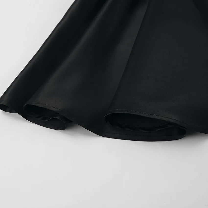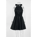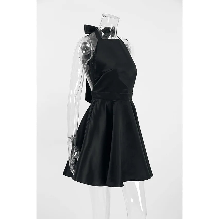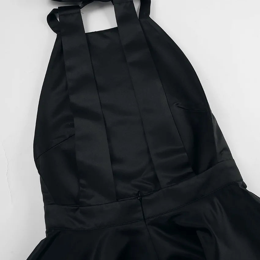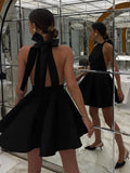 Vintage Satin Backless Halter Black Short Dress Women's Lace-up Pocket Sleeveless Mini Dresses Female Party Evening Summer Club