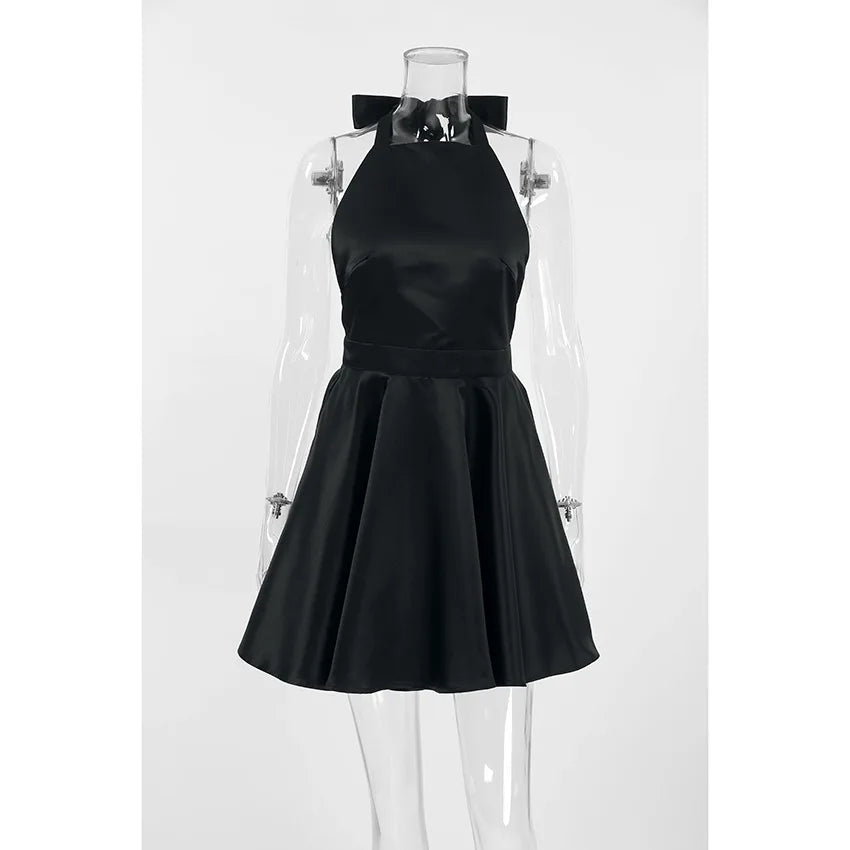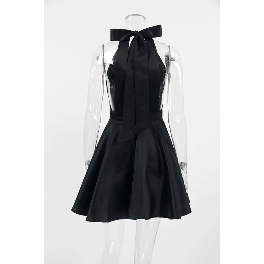 Title: Sexy Bow Bandage Mini Dress β Solid Color, Slim Fit