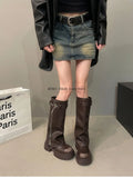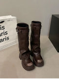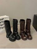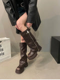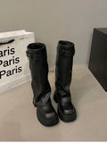 Women’s Punk Knee-High Motorcycle Boots with Platform – Handmade Winter Style