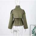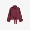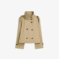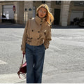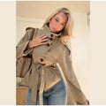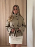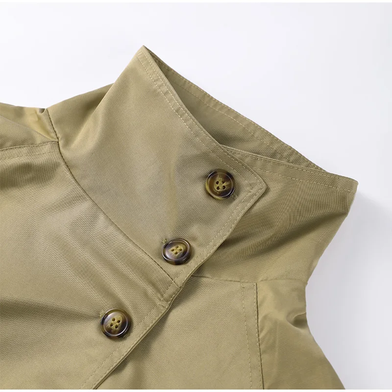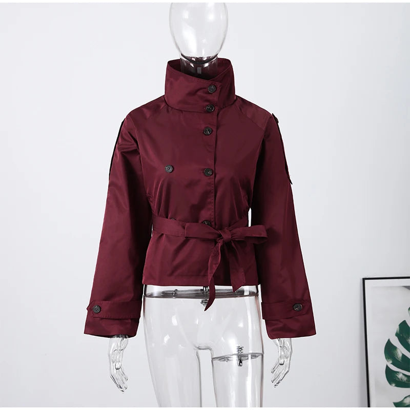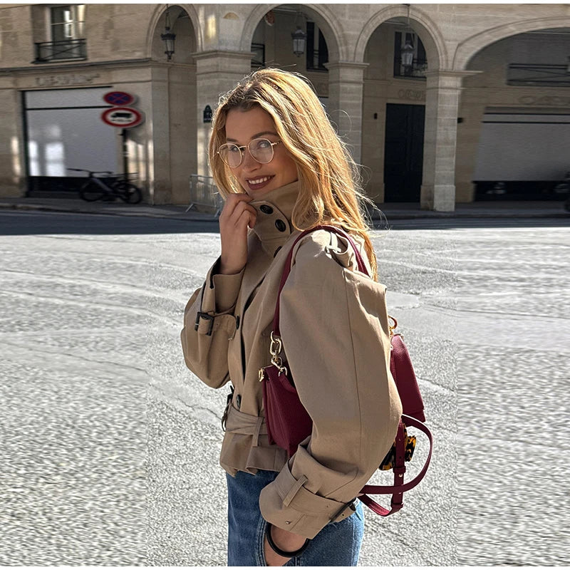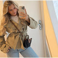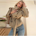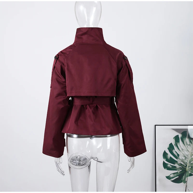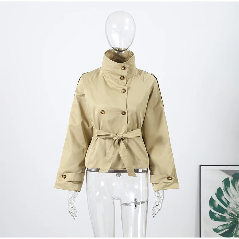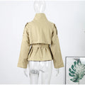 Women's Chic Stand Collar Double-breasted Belted Waist Cropped Trench Coat Shoulder Epaulets 2025 Autumn Casual Street Outerwear