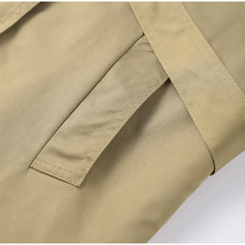 A chic and versatile trench coat designed for middle-aged women, perfect for autumn and winter night-out occasions. Crafted from durable polyester with a non-woven construction, this coat features a double-breasted closure, button-up collar, and wide-waisted fit for a stylish streetwear look. Its solid color design and standard thickness make it a timeless outerwear piece.