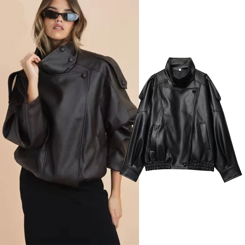 Women's Faux Leather Jacket Autumn Winter Loose Jackets Coats for Women Fashion Streetwear Female Outerwears Tops