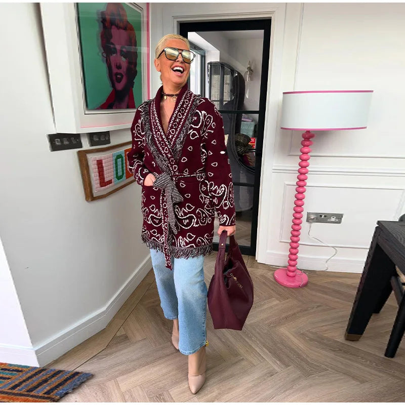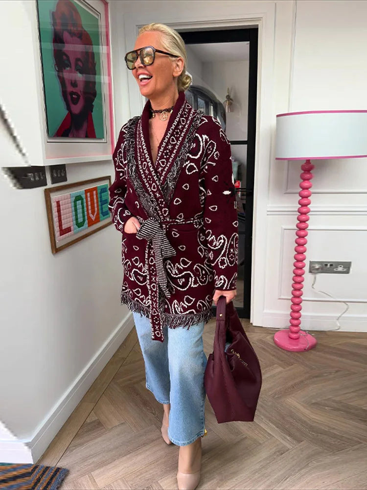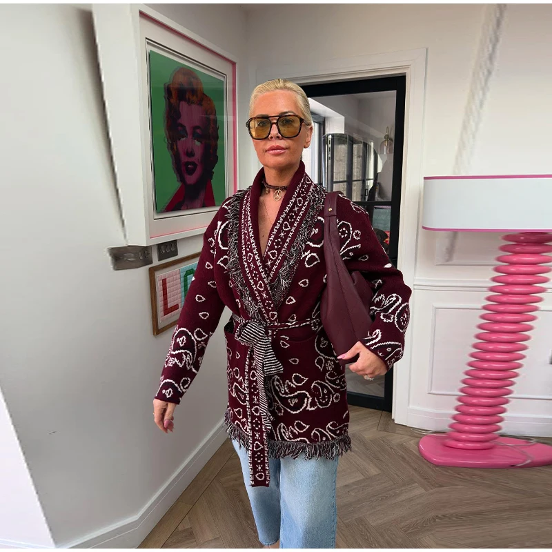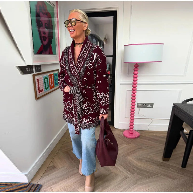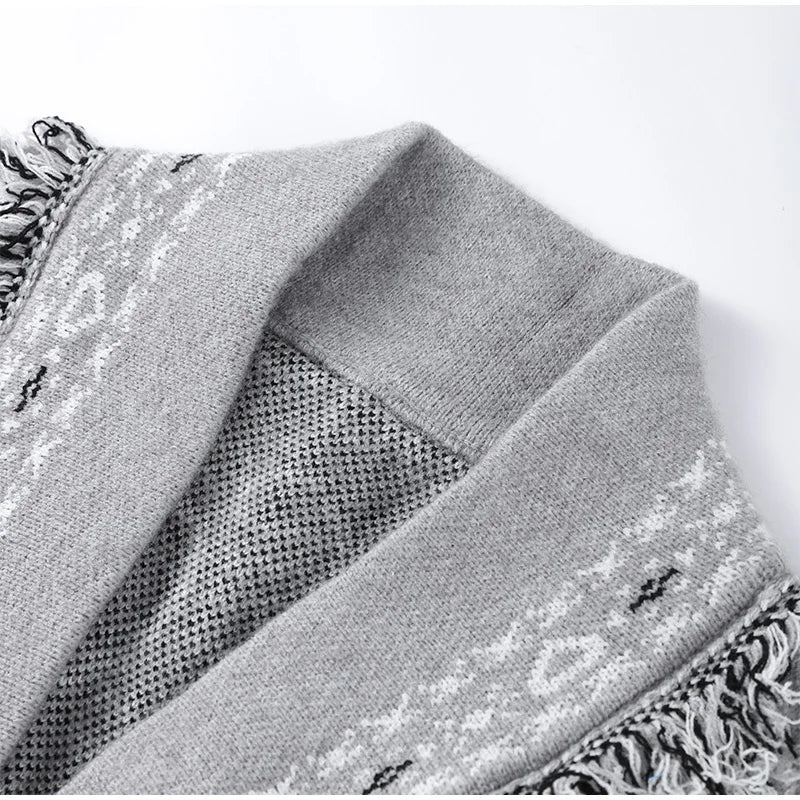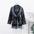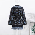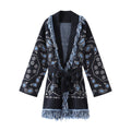 - Model Number: Women’s Print Fringe Knitted Long Coat