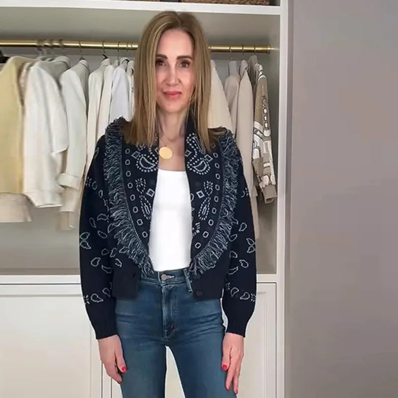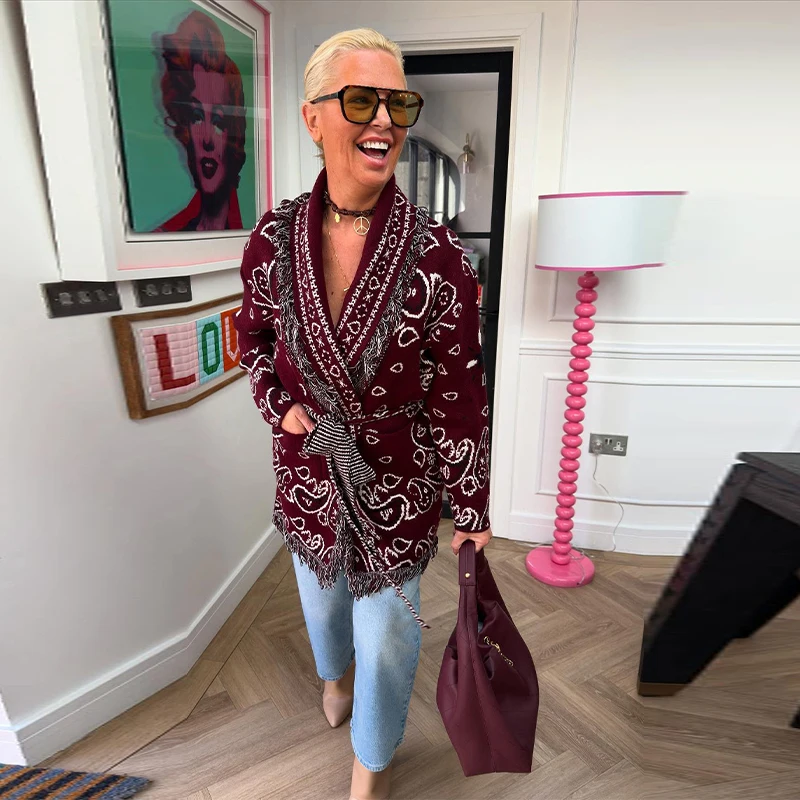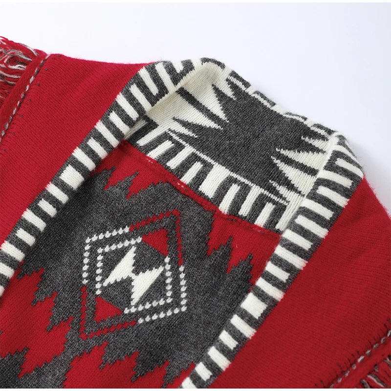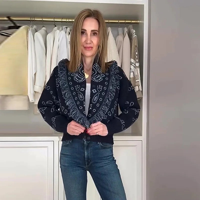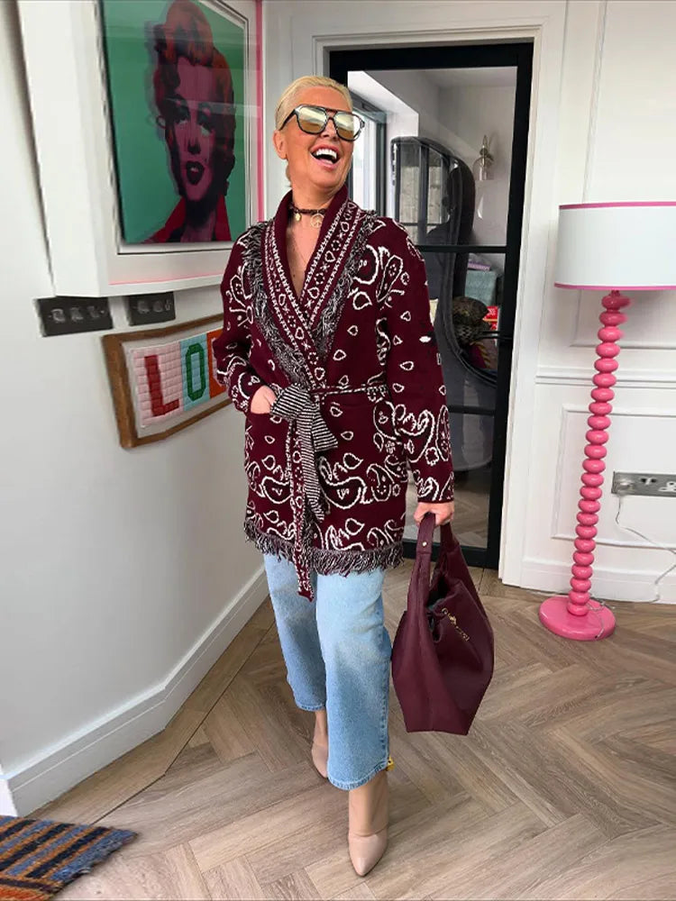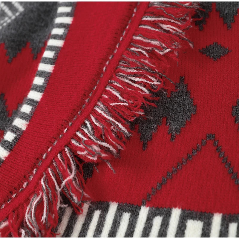 - Model Number: Women’s Print Fringe Knitted Long Coat