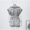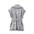 Title: Streetwear Printed Fringe Knitted Long Coat – Sleeveless, Regular Fit