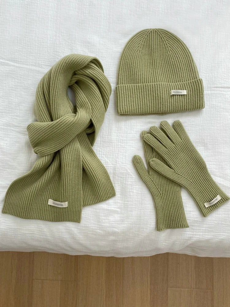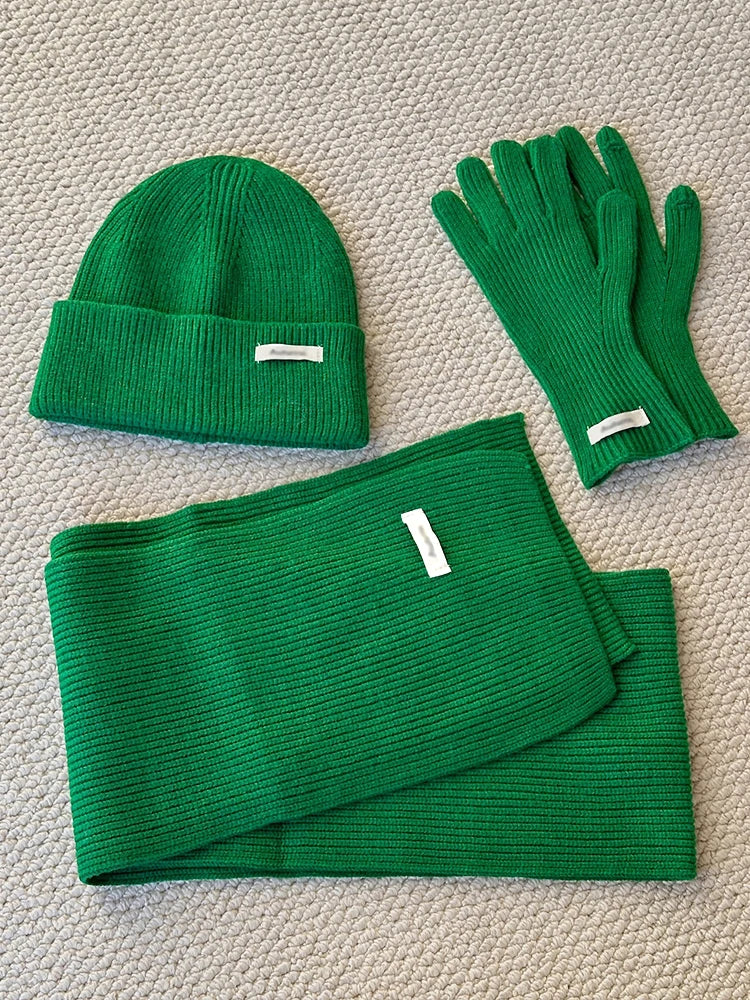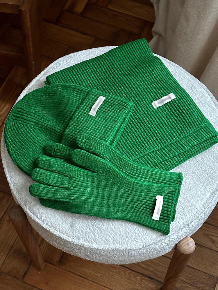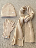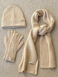 - Complete set includes scarf, hat, and gloves for coordinated styling.